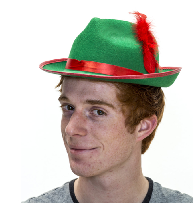 Green Fedora Hat-Robin Hood Oktoberfest Fest Hat By Carnival Fedora Trilby Hat with Red Band .