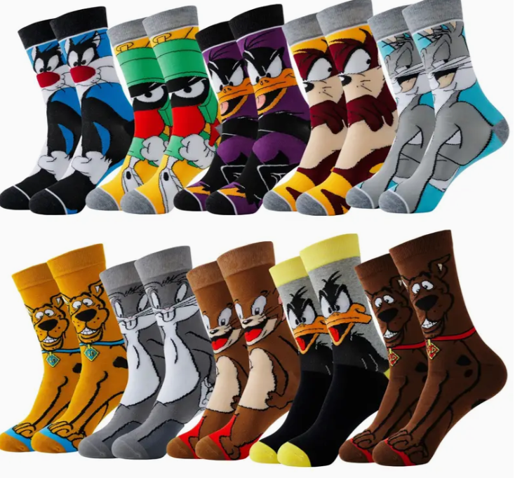 Socks Looney Tunes Warner Bros Movie Character Movie Character Colorful Mens Funny Novelty Dress Crew Socks Wedding Groomsmen’s Heroes Character Colorful Mens Funny Novelty Dress Crew ..