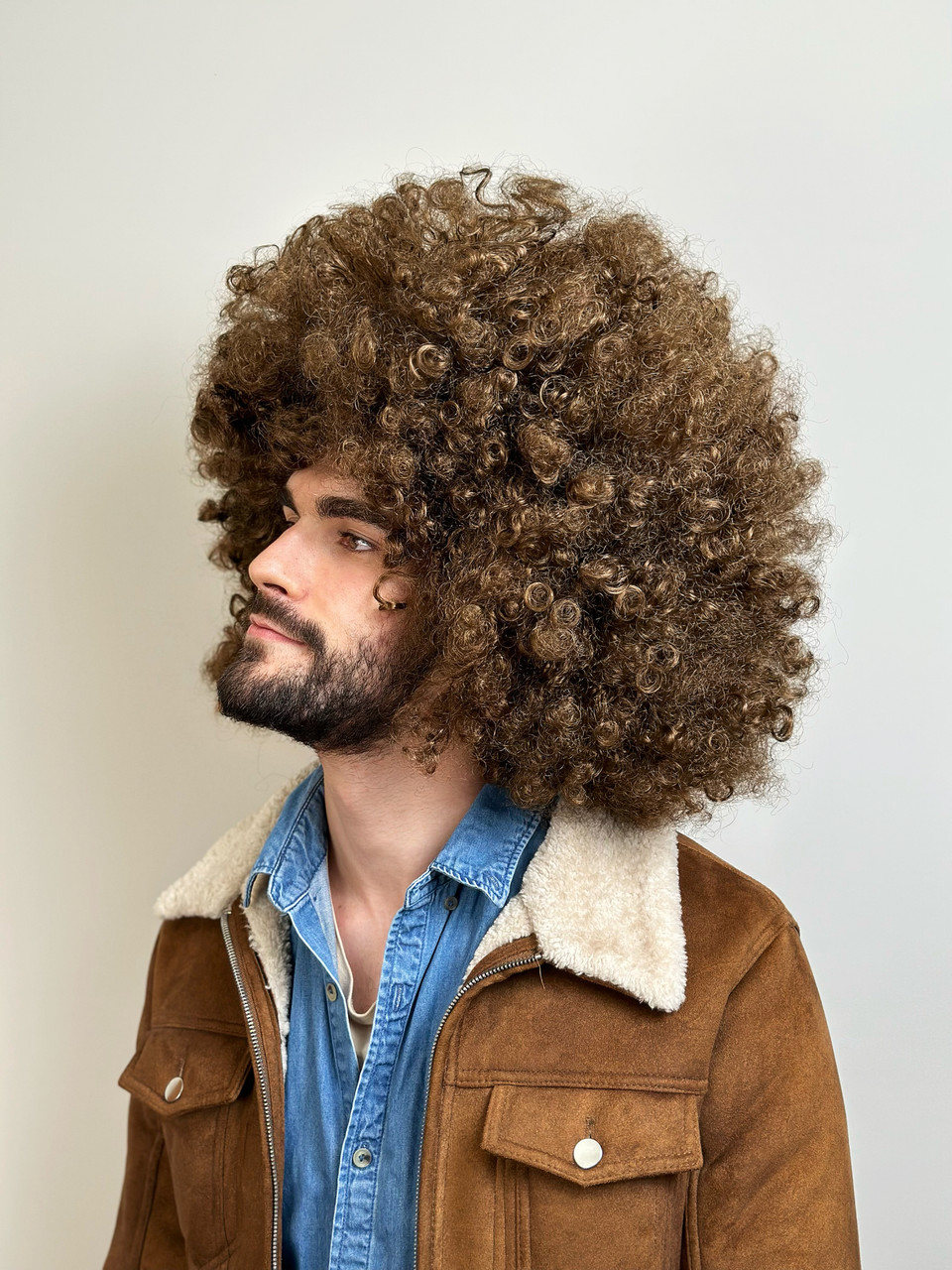 Step back into the funky era of the 70s with our Super Jumbo Brown Afro Disco Costume Wig! This wig is the ultimate accessory to transport you to the groovy dance floors and disco beats of the era.